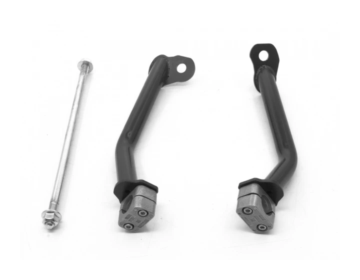 It has been documented that the OEM bars’ hard rubber pad can punch a hole in the cylinder header, which is why AltRider has produced a Reinforcement Bar to brace against impact and strengthen the entire crash bars structure. The Altrider design directs force in an almost straight line to the frame of the motorcycle, with no unnecessary bends or flimsy band clamps to bend under load.Â