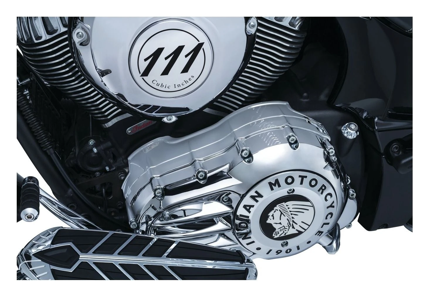The Kuryakyn Chrome Inner Primary Cover for Indian brings the bling from the outer cover to blanket the powder-coated inner primary at the base of the motor for a fully chromed custom appearance. Easy installation with high-strength 3M® VHB™ adhesive takes minutes.